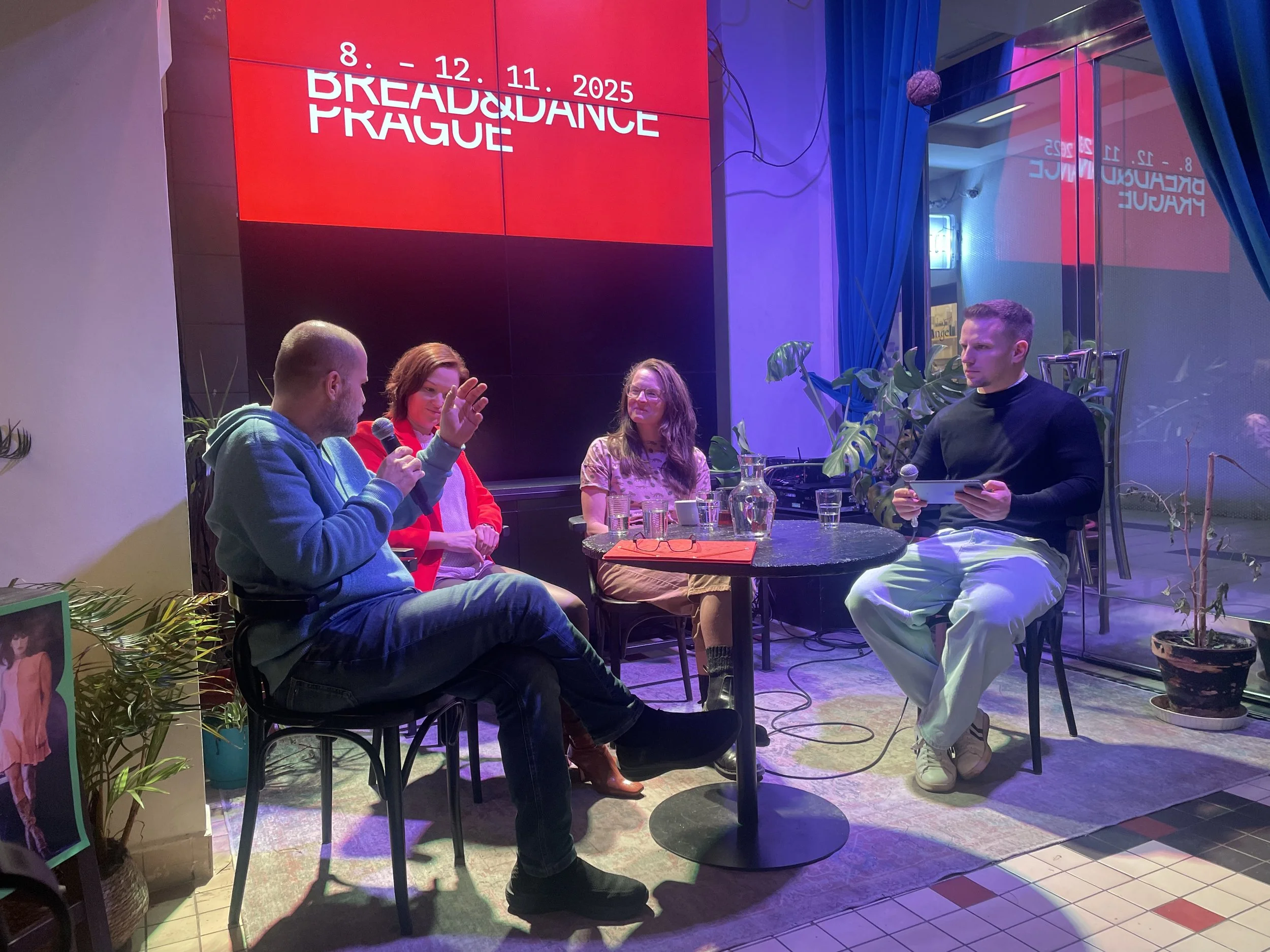 Dne 12. 11. 2025 jsme v kavárně Archa+ uspořádali kulatý stůl Slova pro tanec v éře umělé inteligence, a to ve spolupráci s festivalem Bread and Dance. Debata otevřela otázky role AI v taneční a kritické praxi – od autorství, etiky a jazyka až po velmi praktická témata, jako je využití AI při administrativě či psaní grantů. Diskuzi s Barborou Brabcovou, Eliškou Brtnickou a Danielem Hrbkem moderoval šéfredaktor Tanečních aktualit Josef Bartoš.